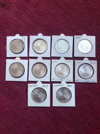 Conjunto de monedas conmemorativas, cada una en su protector individual. - Diseños variados. - Ideal para coleccionistas. - Años: (Una de cada) 2000-2001-2002-2003-2004-2005-2006-2007-2008-2009-2010 Sin Circular! Originales Vintage Numismática