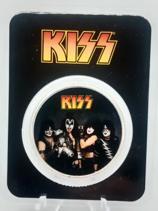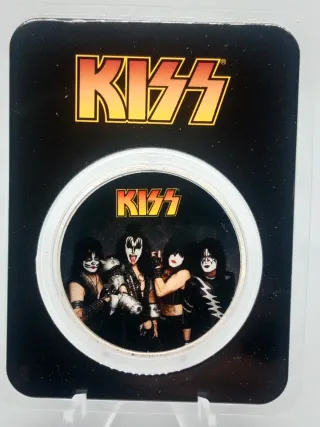 Moneda de colección de plata 999 de inversión, conmemorativa de la banda KISS. Presentada en su blister original. - Plata de 1 onza. - Diseño a todo color. - Incluye imagen de la banda. Posibilidad de entrega en zona plaza Cataluña. No bajo precio