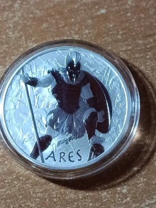 Onza de plata con la figura de Ares, dios griego de la guerra y Artemisa, diosa de la caza y la castidad Preciosas piezas de colección,mas bonitas en mano - Diseño detallado de Ares. - Acabado en plata. - Parte de la serie Dioses del Olimpo. - precio por unidad