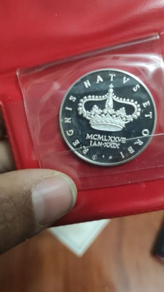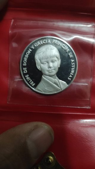 Moneda de plata conmemorativa del viaje de Juan Pablo II a España. Diámetro 3'5 cms peso 15 gramos