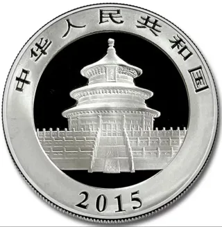 Moneda de colección conmemorativa del panda. Un diseño detallado y elegante. - Material: Plata. - Peso: 1 onza. - Valor nominal: 10 Yuan. - Año 2015