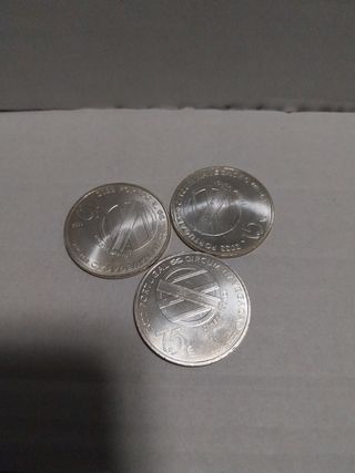 Moneda conmemorativa del Campeonato Mundial de Fútbol de 1982. - Diseño con dos futbolistas en acción. - Inscripción CAMPEONATO DEL MUNDO DE FÚTBOL y ESPAÑA 82.