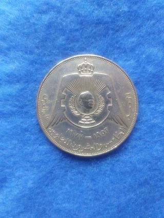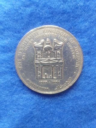moneda Jordania de 1977, cuarto dinar, bodas de plata del rey HUSSEIN