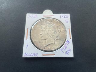 Moneda de plata de 1 dólar de Estados Unidos, acuñada en el año 1926. - Año: 1926 - Denominación: 1 Dólar - País: Estados Unidos - Material: Plata 0.900 - Diseño de la Libertad. - Peso: 26.68 gr. - Diámetro: 37 mm
