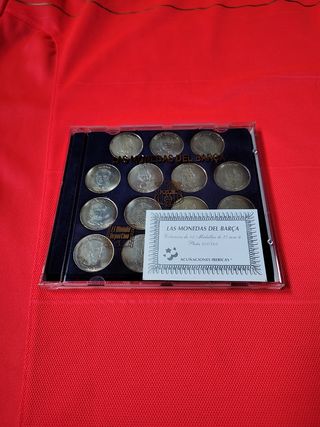 Colección de 15 monedas de 25mm. del FC Barcelona. Están en perfecto estado y se presentan en un estuche de plástico transparente. - Colección de 15 monedas - Plata 800/000- Estuche protector incluido. Colección del Año 1999. SÓLO ENVÍO.