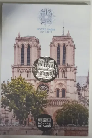 Moneda conmemorativa de plata de Francia. - Diseño de la Catedral de Notre Dame de París. - Valor nominal de 10€.