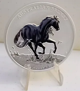 Índice de rareza de Numista: 68 Moneda de plata "Australian Brumby" de 2020 de una onza, acuñada por The Perth Mint. Detalles de la Moneda Emisor: Australia, como moneda de curso legal con un valor nominal de $1 AUD. Casa de Moneda: The Perth Mint, identificada por la marca de ceca 'P' en el reverso. Año de Emisión: 2020. Metal y Pureza: 1 onza troy de plata pura 99.99% (9999). Diseño del Reverso: Muestra un caballo brumby (caballo salvaje australiano) galopando y salpicando en agua poco profunda, diseñado por Jennifer McKenna. Tirada Limitada: La acuñación máxima fue limitada a solo 25,000 monedas en todo el mundo.