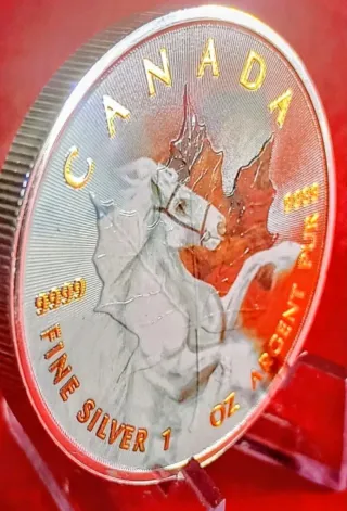 Moneda de colección de 1 onza de plata pura. - Plata 9999 de alta pureza. - Diseño Maple Leaf 2024. - Peso de 1 onza. COLOR MAPLE LEAF 2024, 1 onza de plata 9999. MONEDA 9999 MAPLE LEOPARDO COLOR. Canada 2024, 5 dólares. Diámetro 38 mm Peso 1 Oz troy Plata 9999 Calidad BU Tirada 100 piezas. En un magnífico estuche de lujo, símil piel.