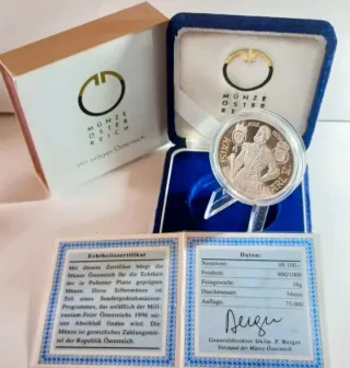 plata 833,3 Austria Casa de la Moneda de Austria • Restrike 23,39 gramos de plata 999 Encapsulada Diámetro: 42 milímetros la