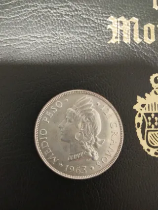 Moneda de plata de la República Dominicana. - Ag.650 milésimas.12,5 gramos. - Año: 1963 - Denominación: Medio Peso - Material: Plata