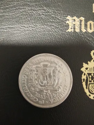 Moneda de 1 peso de plata de la República Dominicana, acuñada en el año 1897. Presenta un diseño clásico con el perfil de una figura histórica. - Con desgaste evidente. - Material: Plata. 25 gramos. Ag 350 mils. - Año: 1897. - Denominación: 1 Peso.