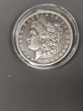 Moneda de plata One Dollar Morgan del año 1889. Plata 26,7g-38,1mm-2,9mm - Diseño de Lady Liberty. - Canto con estrías.