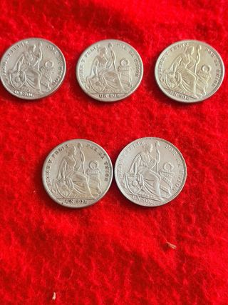 5 Monedas 1 sol peru.- varios años.- plata 500.-