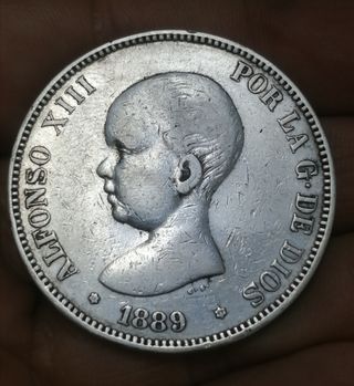 MONEDA PLATA 5 PESETAS 1889 ALFONSO XIII