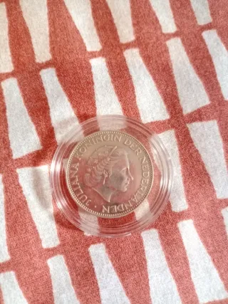 Moneda de 2 Gulden de plata, emitida en 1961. Representa a la Reina Juliana. - Composición: Plata 720. - Peso: 15 g. - Diámetro: 33 mm. - Grosor: 2,3 mm.