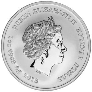 Onza de plata James Bond, logo dorado, año 2021, Tuvalu, encapsulada
