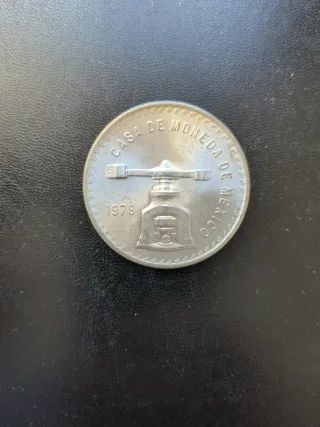 Moneda de plata mexicana conmemorativa de la Casa de Moneda de México. - Diseño de balanza y prensa. - Año de acuñación: 1979. Variante del plato sobre la n. Una onza de plata pura. Se entrega la moneda de la foto en funda de plástico.