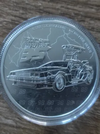Moneda conmemorativa de Regreso al Futuro por su 35 aniversario. - Plata pura .999. - Diseño del DeLorean. - 1 Onza de plata.