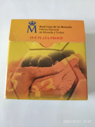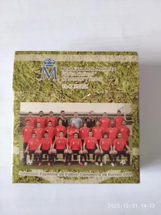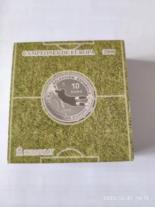 Moneda de plata de 10 euros de la selección española de fútbol, campeona de Europa del 2008. Cajas y certificados. 190 euros.