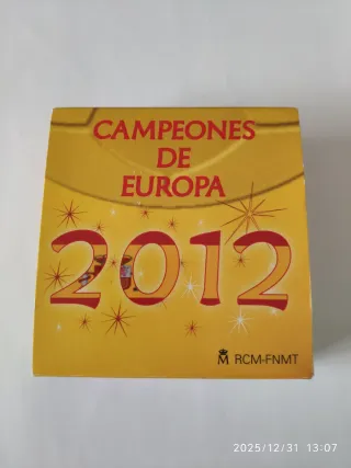 Moneda de plata de Campeones de Europa de 2012. Tiene minimo golpe en el canto. Caja y certificado. 120 euros.