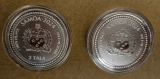 Lote 1+2 Monedas Plata Año del Dragón 2024 Samoa