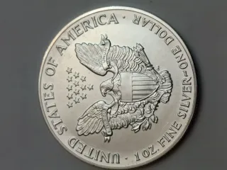Moneda de plata Onza Águila del año 1991. - Diseño de la Libertad Caminando. - Inscripción In God We Trust. - Canto estriado.