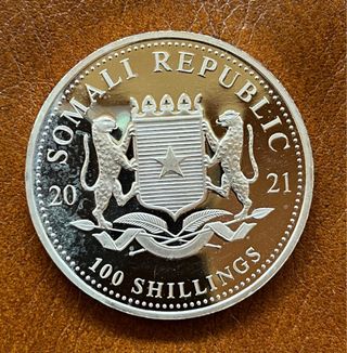 Onza de plata pura con diseño de elefante de Somalia del año 2021. - Plata 99.99% pura. - Peso de 1 oz. - Diseño de elefante africano. Se entrega la moneda de la foto encapsulada.
