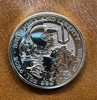 Moneda de plata pura Britannia & Liberty del año 2024. - Peso: 1 Onza - Pureza: 999.9 - Diseño: Britannia y Liberty - Año: 2024 Se entrega la moneda de la foto encapsulada.
