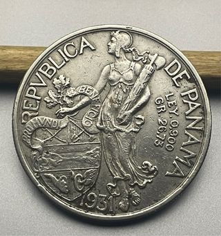 Moneda de 1 Balboa de Panamá, acuñada en el año 1931, la tirada menos numerosa. Plata de 900 milésimas, peso: 26,67 gramos.