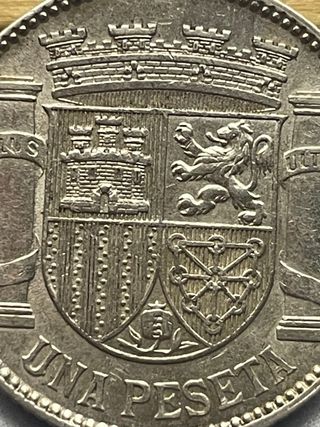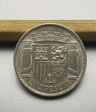 Moneda de 1 peseta del año 1933, acuñada en 1934 (*3 *4). II República Española. Última peseta circulante acuñada en plata. Ley de 835 milésimas, peso: 4,99 gramos.