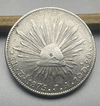 8 Reales 1875 Zacatecas (Méjico) J A. Con resellos
