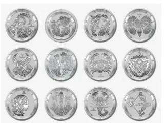 Conjunto completo de 12 onzas de plata .9999 con los signos del zodíaco. - Cada moneda representa un signo zodiacal. - Acabado de alta pureza en plata .9999.