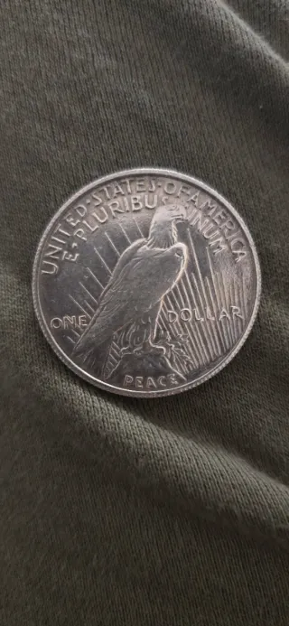 Moneda conmemorativa Peace Dollar de 1 dólar estadounidense. - Diseño del águila. - Inscripción United States of America, E Pluribus Unum, Peace, One Dollar.
