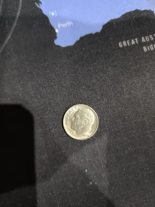 Moneda de plata de 10 centavos de Estados Unidos. Moneda de plata de 1964. Plata 900 Se vende como moneda de coleccionista no a peso de plata. Si que se actualiza el precio si sube el precio de la plata.