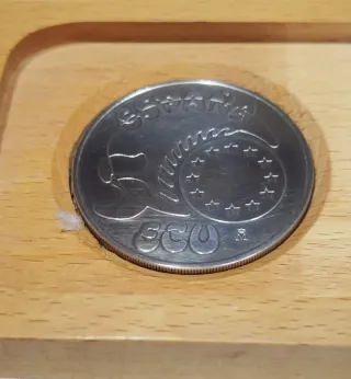 Moneda de plata de 5 ECU acuñada en el año 1989. Presenta un diseño grabado con un jinete. - Material: Plata - Valor: 5 ECU - Año: 1989