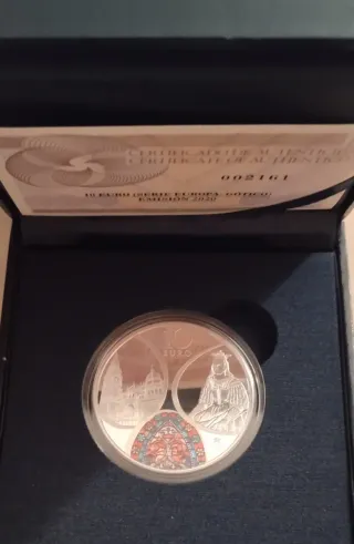 Moneda de plata de 10 euros de España, perteneciente a la Serie Europa 2020 con temática Gótica. Se presenta en su estuche oficial y con el certificado de garantía. Completamente nueva Calidad proof