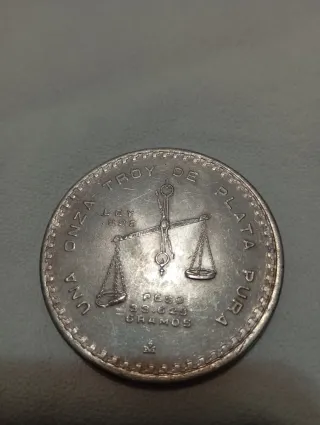 Moneda de plata con diseño de balanza. - Una onza troy. - Ley .925. - Peso: 33.625 gramos. - Plata pura.