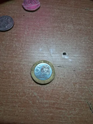 Moneda de Tailandia con un diseño distintivo. - Bimetálica, con centro dorado y borde plateado. - Presenta un perfil grabado en el anverso.