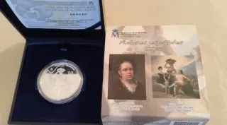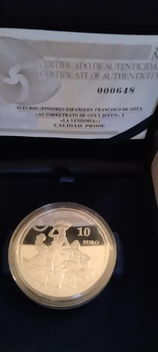 Moneda de 10 euros de plata conmemorativa de España del año 2010, dedicada a Goya. La vendimia En estuche oficial y con el certificado de garantía Completamente nueva