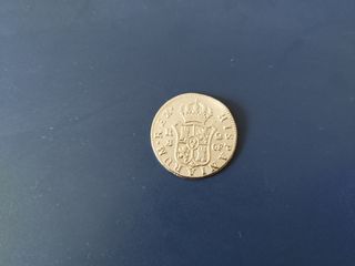 Reproducción de moneda Dos Reales Carlos III 1774 Información sobre la moneda original: Metal: Plata Ceca: Sevilla Cronología: 1774 Anverso: Busto del rey. Reverso: Escudo coronado cantonado con las armas de Castilla, León y Granada. Sobre el todo Escusón borbónico. A los lados R S - 2 CF La reproducción presenta un pequeño doblez