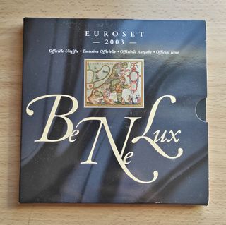 Cartera Euro set del BENELUX año 2003, incluye todas las monedas euro de ese año de los países de Bélgica, Holanda y Luxemburgo. Contiene además una medalla de plata conmemorativa. Puede acumular artículos para ahorrar en gastos de envío.
