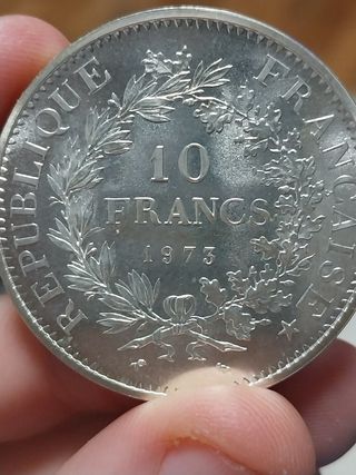 Mastodóntica moneda de 10 francos de 1973, PLATA 900 - cobre 100, 25 gramos y 37 mm de diámetro. Prácticamente un medallón. SIN CIRCULAR. FLOR DE CUÑO. La vendo encapsulada.