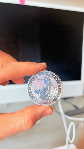 Lote de 3 monedas de plata. - Britannia 2025 - 31.25 gramos plata pura - 999 Fine Silver 2 monedas de plata .900 de 5 pesetas de 1878 y 1889.