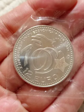 Moneda conmemorativa de 12 euros 2009.Aniversario del euro - Material: Plata. Nunca usada .En su plástico.