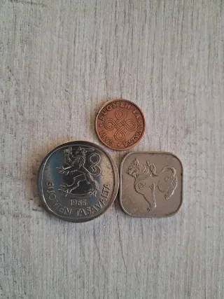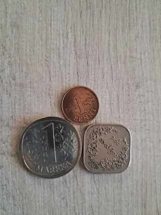 Conjunto de tres monedas antiguas con diferentes diseños. Una de belgica ,un Franco francés y un flaco belgie - Una moneda de bronce con perfil de militar. - Una moneda plateada con figura femenina y texto 'BELGIQUE'. - Una moneda plateada con perfil femenino y año '1951'.