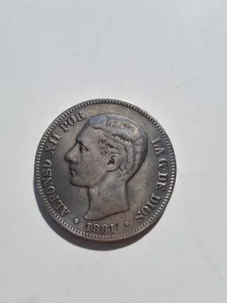 Moneda de plata con la efigie de Alfonso XII. - Año: 1881 - Leyenda: ALFONSO XII POR LA G. DE DIOS