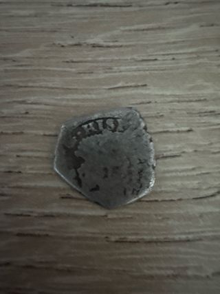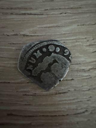 Macuquina de plata de ½ Real acuñada en Potosí durante el reinado de Carlos II. Una pieza histórica con un diseño distintivo. - Material: Plata. - Ceca: Potosí. - Época: Carlos II.
