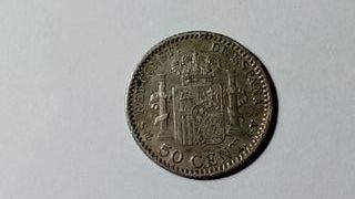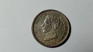 RAREZA PC V 1904*1-0 Plata 835/1000 Alfonso XIII 50 céntimos KM#723.2 Peso 2.5g, diámetro 18mm, VF circulado original Tirada baja 1.30M unidades Recogida Santa Cruz Tenerife o envío certificado 5€