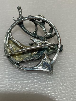 Broche caza ciervo con trompa plateado vintage