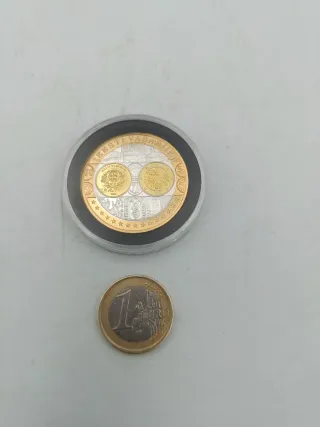 Moneda conmemorativa de Portugal. Plateada y dorada. Peso: 17,07 gramos. Medidas: 4,5 cms (diámetro) Ref: Dac Puedes verlo y recogerlo presencialmente en el Polígono de Raos, Santander. Tlf: 635153338. Abrimos las mañanas de Lunes a Sábado de 10 a 14h y las tardes de Lunes a Viernes de 17 a 20h.